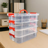 4-Layer Transparent Multipurpose Plastic Storage Box with Handle – Modular Organizer Container for Beads, Tools, Craft Supplies, Sewing Items, Hardware & Stationery – Stackable Locking Design with Red Clips