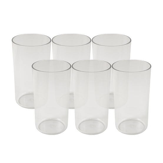 Get the look of glass with the safety and durability of plastic. This 6-piece Clear Plastic Tumbler Set is made from heavy-grade, unbreakable plastic, designed to mimic the appearance of glass while offering a lightweight, impact-resistant alternative.