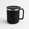 1 Pc Apex Happy Mug with Silicone Lid – 400 ml Approx Capacity – Black Double Wall Insulated Coffee/Tea Mug with Handle – Durable Plastic Outer and Steel Inner Travel Mug for Home, Office, Gifting
