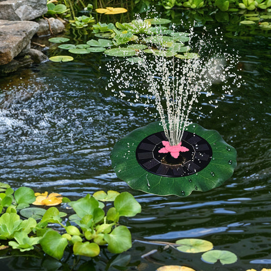 Add a touch of natural beauty and soothing sounds to your outdoor space with this unique solar-powered floating water fountain pump. This innovative fountain features an integrated artificial lotus leaf base, allowing it to gracefully float on the surface of your pond, bird bath, or water feature. Harnessing the power of the sun, it operates automatically without the need for electricity or complicated wiring, making it an eco-friendly and hassle-free addition to your garden.