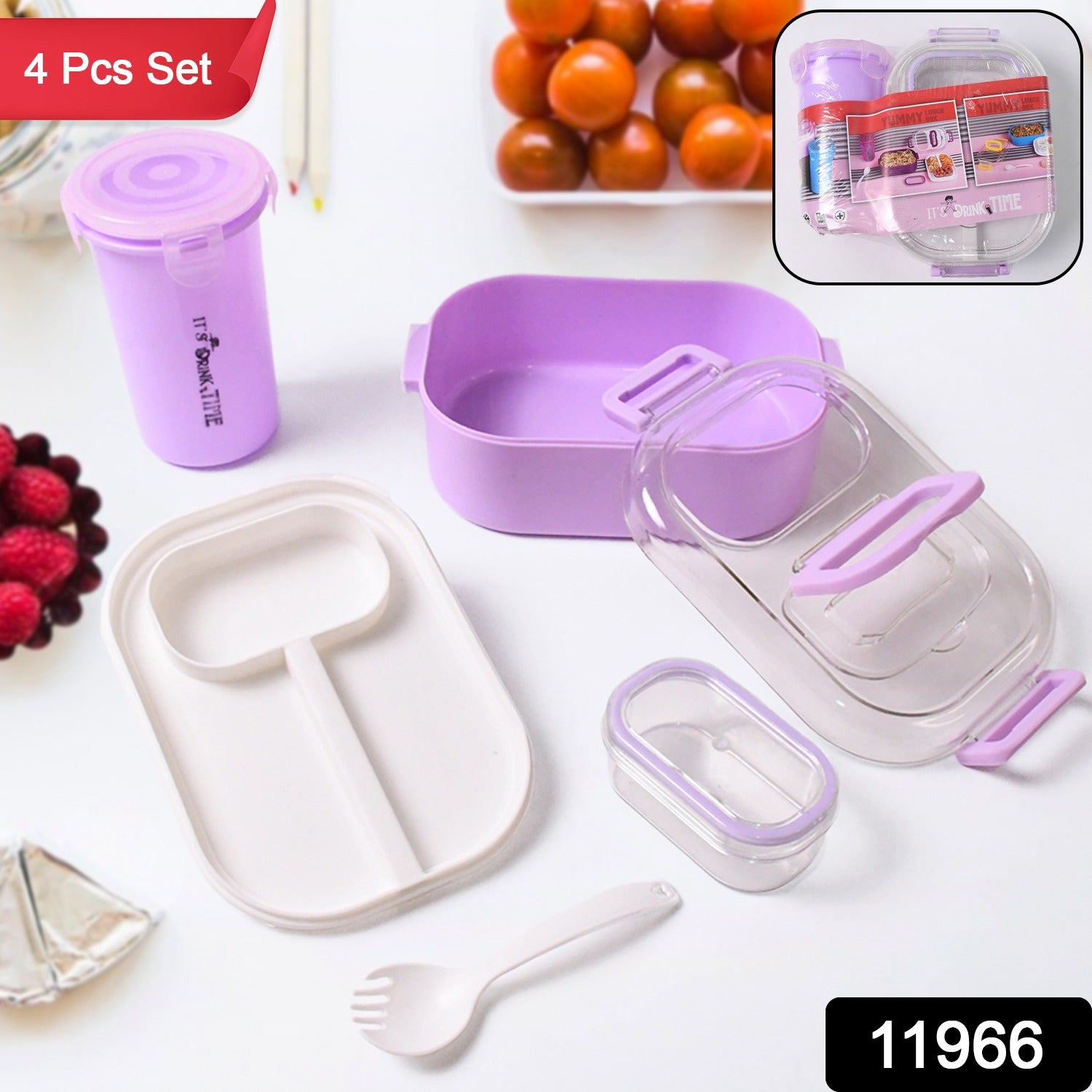 Plastic Lunch Box With Small Box Bottle Sponn For Kids Lunch Box (4 Pc Set)