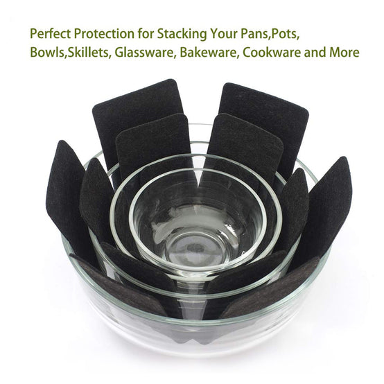 - EASY TO USE: Perfect protection when storing your cookware, bakeware, stoneware, skillets, bowls, plates and more. Place it in between pots and pans to avoid scratching, or used in between glassware and ceramic to avoid locking or chipping.